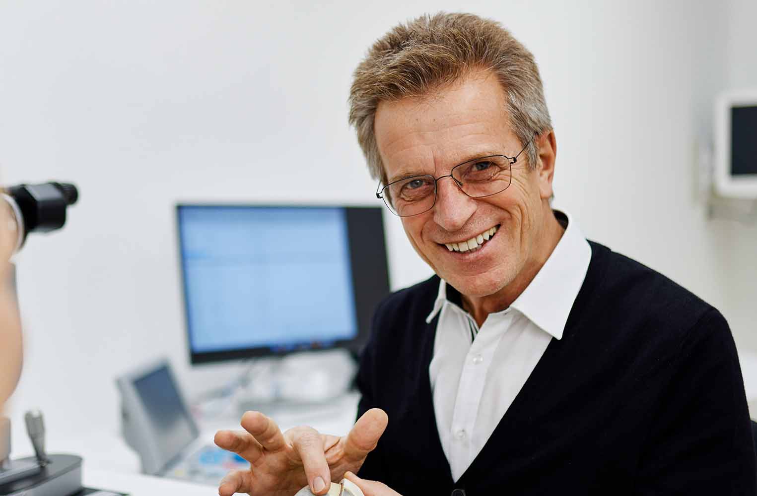Dr. Bernd Wacker gründete die Herbolzheimer Augenarztpraxis 1988 und unterstützt seit der Übergabe der Praxis an Prof. Dr. Katrin Wacker weiterhin das Praxisteam.