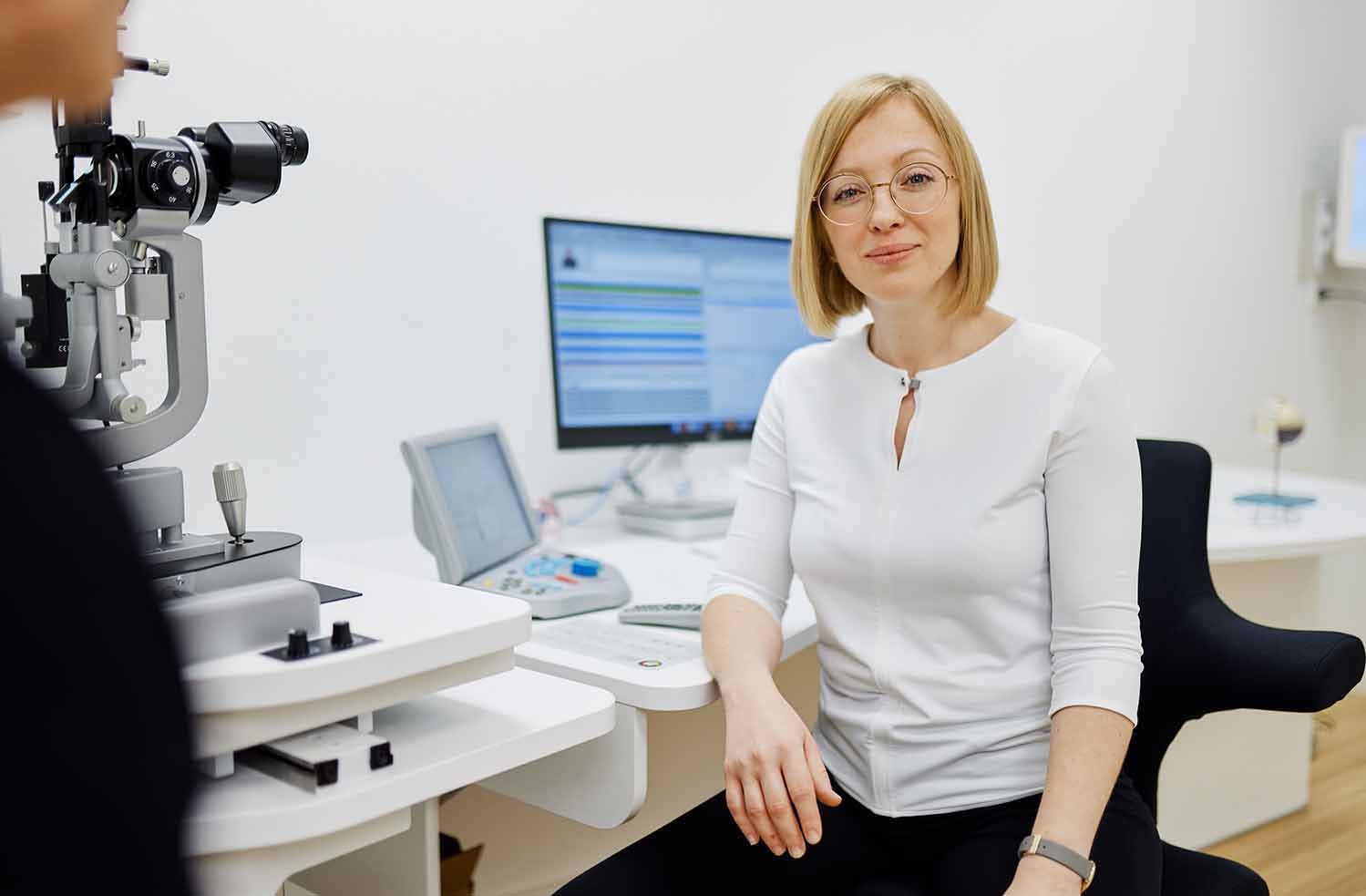 Als Funktionsoberärztin am Universitätsklinikum betreute Frau Dr. Dreesbach Patientinnen und Patienten mit einem breiten Spektrum von Augenerkrankungen. Einer ihrer Schwerpunkte sind Erkrankungen der Netzhaut und Makula. Sie verfügt über mehrjährige Erfahrung mit Laserbehandlungen des Auges und intravitrealen Injektionen (IVOM).